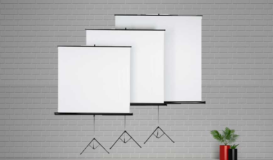 A tripod screen is a portable projection screen mounted on a tripod stand, designed for easy setup and transport. It's available in various sizes,